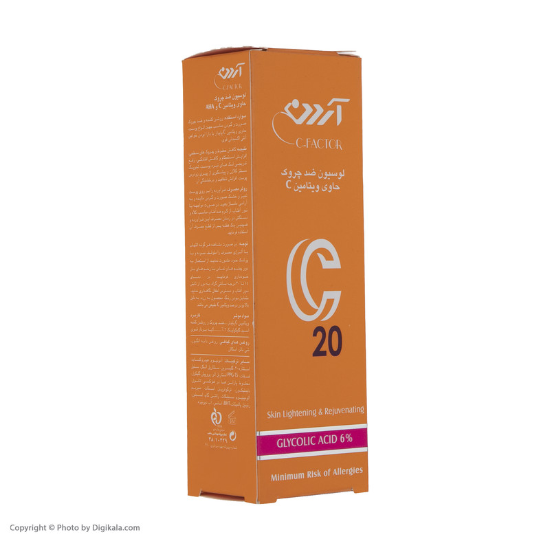 اگر شما هم دههی دوم و سوم عمرتان را گذراندهاید به احتمال زیاد خطوط ریزی را که کم کم بر روی صورتتان مشاهده کرده و به فکر برطرف کردن و پیشگیری از آن افتادهاید. لوسیون ضد چروک آردن مدل Vitamine C در مقدار 30 گرمی تولید و عرضه شدهاست. نوع محفظه نگهدارنده این محصول تیوبی بوده و جنس آن از پلاستیک است. این محصول سبک و جمعوجور بوده و بهراحتی قادر به حملونقل آن هستید. لوسیون ضد چروک آردن حاوی ویتامینهای E و C بوده و برای انواع پوست قابل استفاده است. این محصول جوانکننده و سفتکننده پوست است و چروکهای صورت و گردن را بر اثر استفاده مداوم برطرف میکند. از ویژگیهای این محصول میتوان به لایهبرداری و روشنکردن پوست اشاره کرد. لوسیون ضد چروک آردن شاداب کننده و افزایش دهنده درخشش چهره بوده و محافظت کننده پوست در برابر اشعه مضر آفتاب و رادیکالهای آزاد است. گفتنی است این محصول جلوگیری کننده از فرآیند پیری زودرس و آسیب های ناشی از آفتاب، آلاینده ها، مواد آرایشی و عوامل نامطلوب محیطی است.