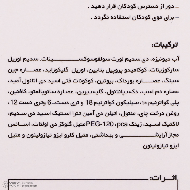 سایر مشخصات : این محصول فاقد سولفات است.