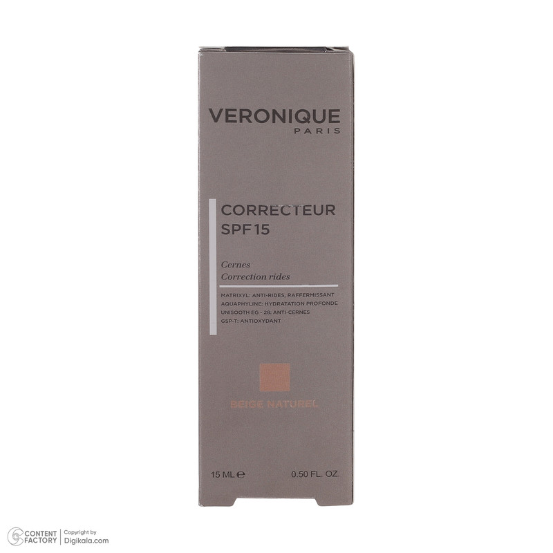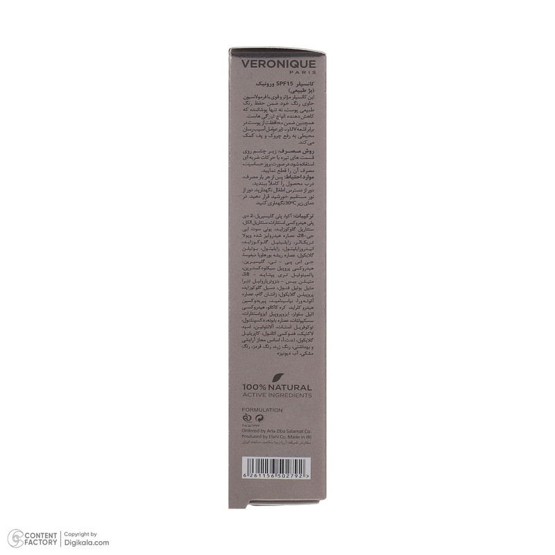کانسیلر VERONIQUE SPF15 محصولی کاربردی برای حفظ زیبایی و محافظت از پوست صورت است. کانسیلر رنگ بژ طبیعی ورونیک تیرگی و لکهای صورت را به خوبی میپوشاند، مانع از ایجاد چین و چروک میشود، به پوست رطوبت رسانی میکند، جریان خون زیرپوستی را بهبود میبخشد، چربی پوست را به خوبی کنترل میکند و از پوست در برابر نور خورشید و رادیکالهای آزاد محافظت میکند. کانسیلر ورونیک برای صورت و دور چشم مناسب است و خاصیت درمانی و رفع لک و تیرگی نیز دارد.