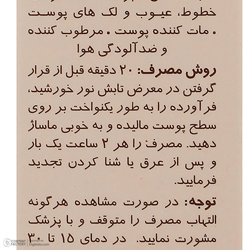 ویژگیهای ضدآفتاب : محافظت کننده در برابر اشعه UVA , محافظت کننده در برابر اشعه UVB , مرطوب کننده , ضد آب
