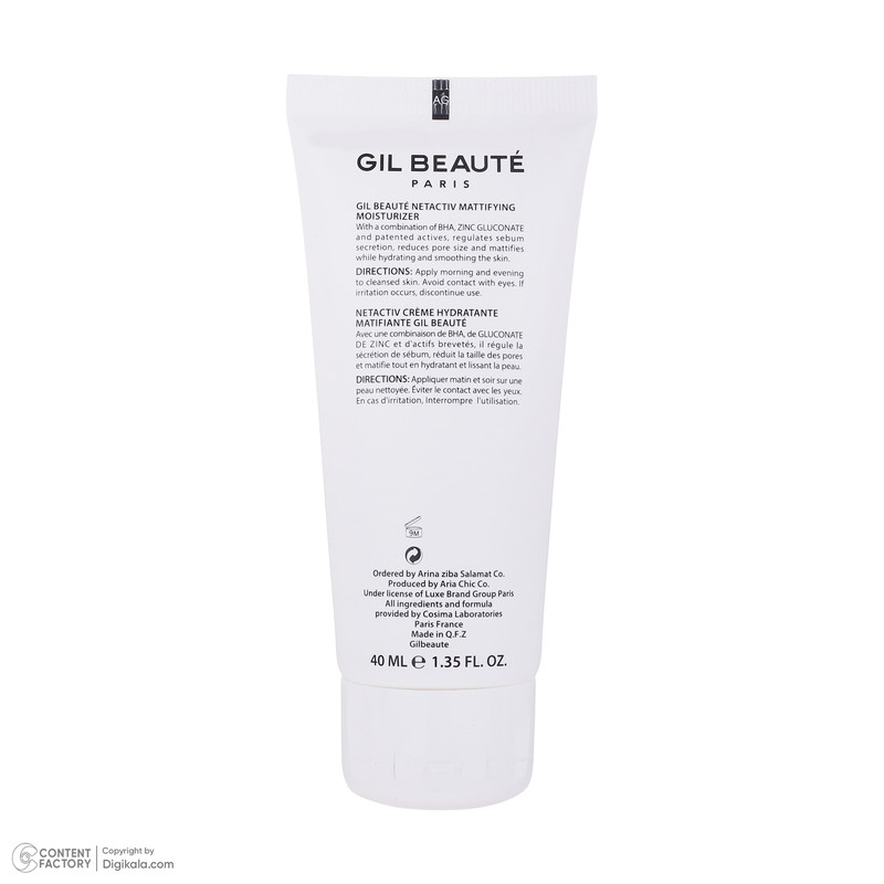 کرم مرطوب کننده مات مناسب پوست های مختلط تا چرب ژیل بوته با کنترل ترشح سبوم، جوشها و کمدونهای سرسیاه پوست را درمان میکند و مانع از برق زدن پوست میشود. کرم مرطوب کننده مات نت اکتیو GIL BEAUTE دارای ترکیبات موثر است که میزان ترشح چربی پوست را تنظیم میکند، با جذب چربی و مات کردن پوست از برق زدن ناشی از چربی جلوگیری میکند، از بروز جوش، آکنه و کومدون پیشگیری میکند و منافذ باز پوست را جمع میکند. کرم مرطوب کننده مات نت اکتیو ژیل بوته فاقد چربی است و مناسب پوست مختلط تا چرب است. قابل ذکر است کرم مرطوب کننده مات ژیل بوته غیر کومدوژنیک است.