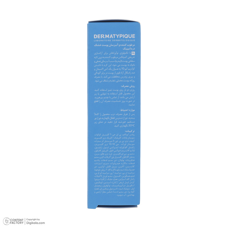 راهنمای استفاده: روزی دو بار روی پوست تمیز کرم آبرسان درماتیپیک استفاده کنید.