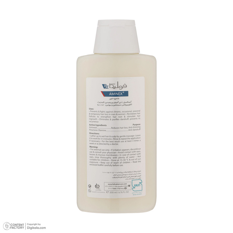 شامپو فولیکا تقویت کننده آمینکس پلاس AMINEX+ Shampoo ریزش مو را درمان می کند. همچنین این شامپو، شوره را از بین برده و برای خانم ها و آقایان مناسب است.